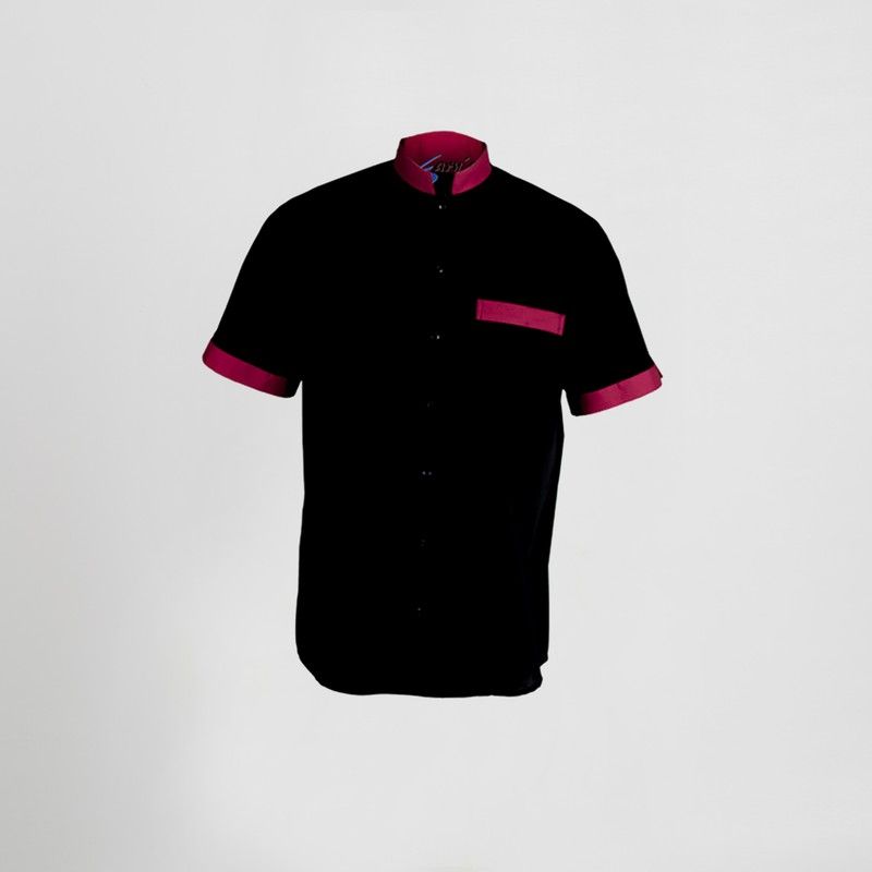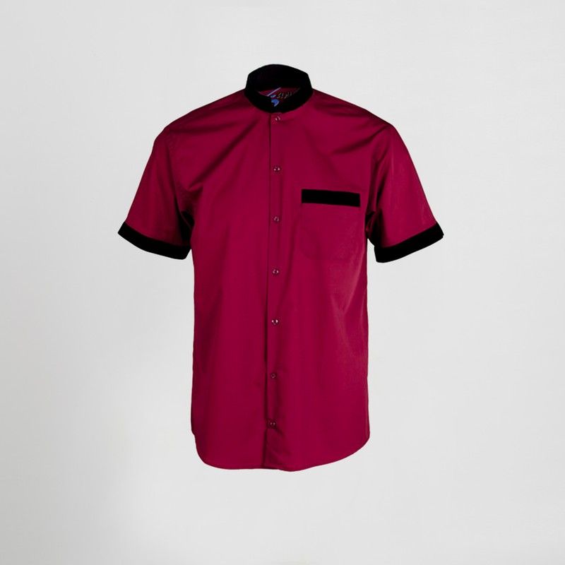 Camisa de hombre en manga corta con cuello mao. Modelo disponible en dos combinaciones distintas en cuello y vuelta del bolsillo. Cuenta con un bolsillo en el pecho izquierdo, canesú y pliegues en la espalda. Ideal para uniforme en hostelería y restauración, recepción, transportes, oficina o comercio.