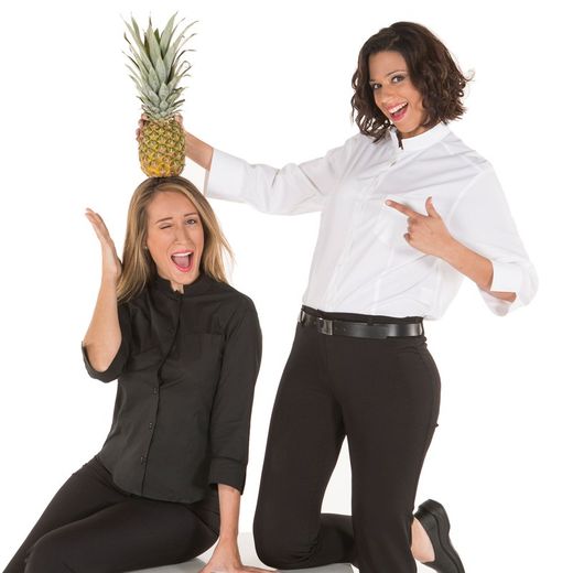 Camisa de mujer con cuello mao. Modelo con manga 3/4 terminada en puño abierto, confeccionado en POPELÍN ELÁSTICO de 96% Algodón - 4% Elastano. Ideal para uniforme en hostelería y restauración, recepción, transportes, oficina o comercio.