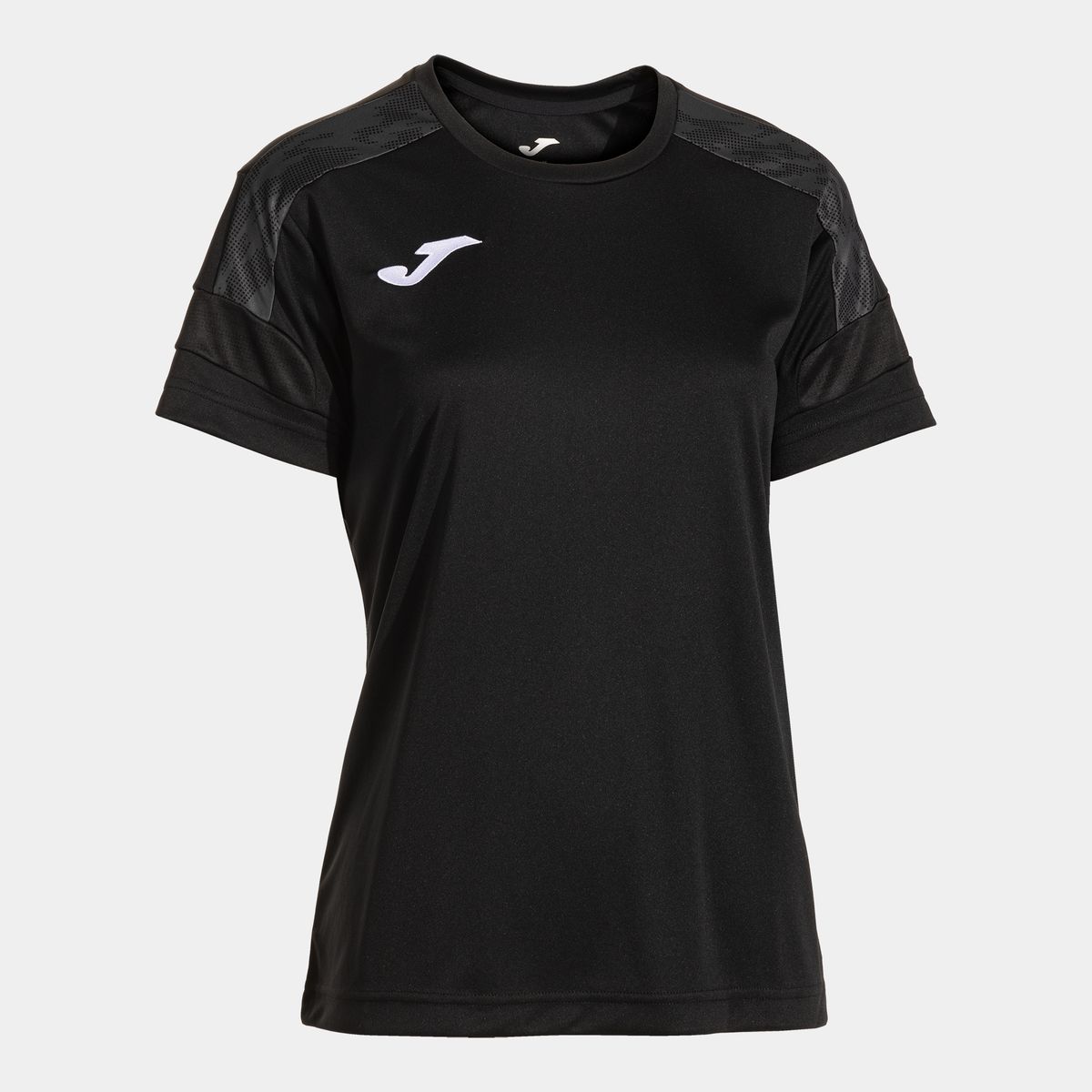 Camiseta de manga corta para mujer, ideal para los amantes del deporte. Diseñada para adaptarse a diversas actividades como fútbol, fútbol sala, y más. Esta camiseta incorpora cuello redondo con cover tape elástico, que proporciona un ajuste cómodo y seguro, evitando cualquier tipo de roce o irritación durante el movimiento. Se ha elaborado con tejido ligero, confortable y resistente, que asegura total libertad de movimiento al deportista.Detalles sublimados. Logotipo de Joma bordado.