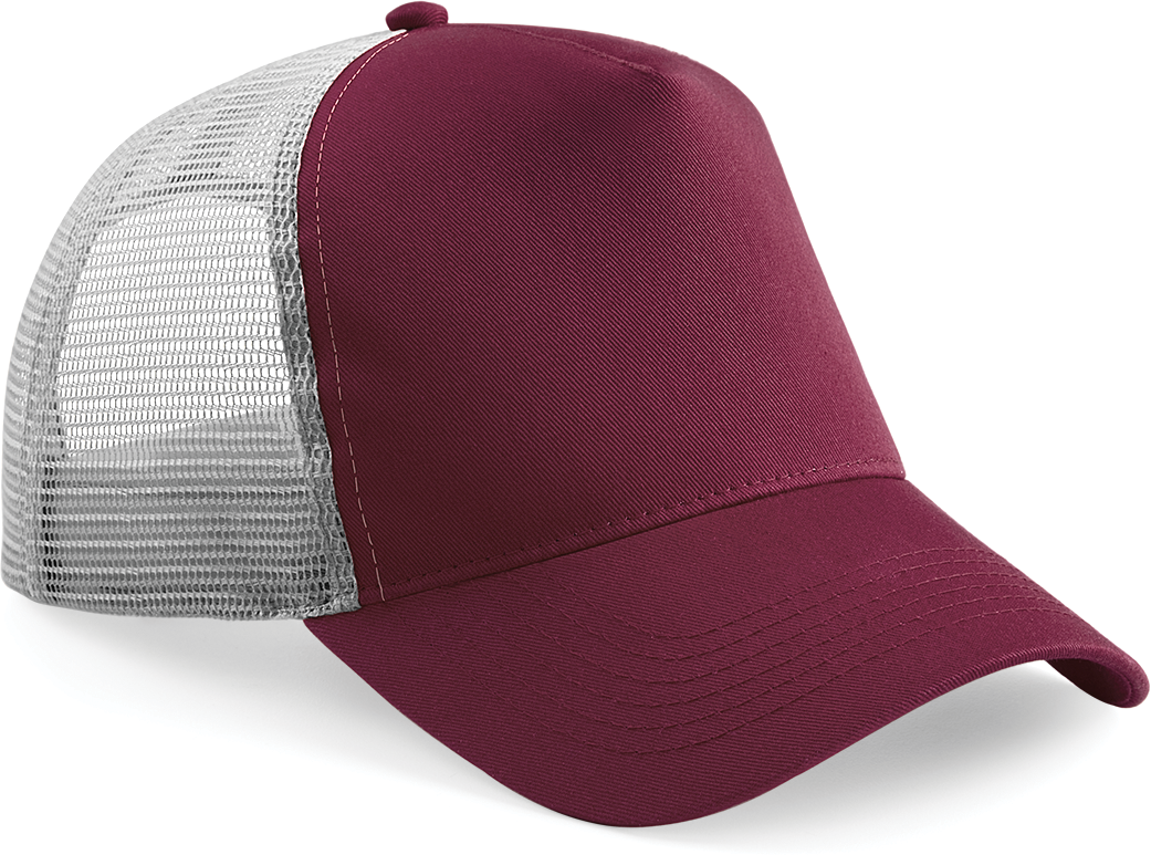 · Pannello frontale e visiera: 100% cotone · Pannelli posteriori: 100% poliestere (mesh) · 5 pannelli · Pannello frontale senza cuciture · Visiera con 6 file di cuciture · Chiusura in plastica regolabile con chiusura · Perfetto per stampa e ricamo