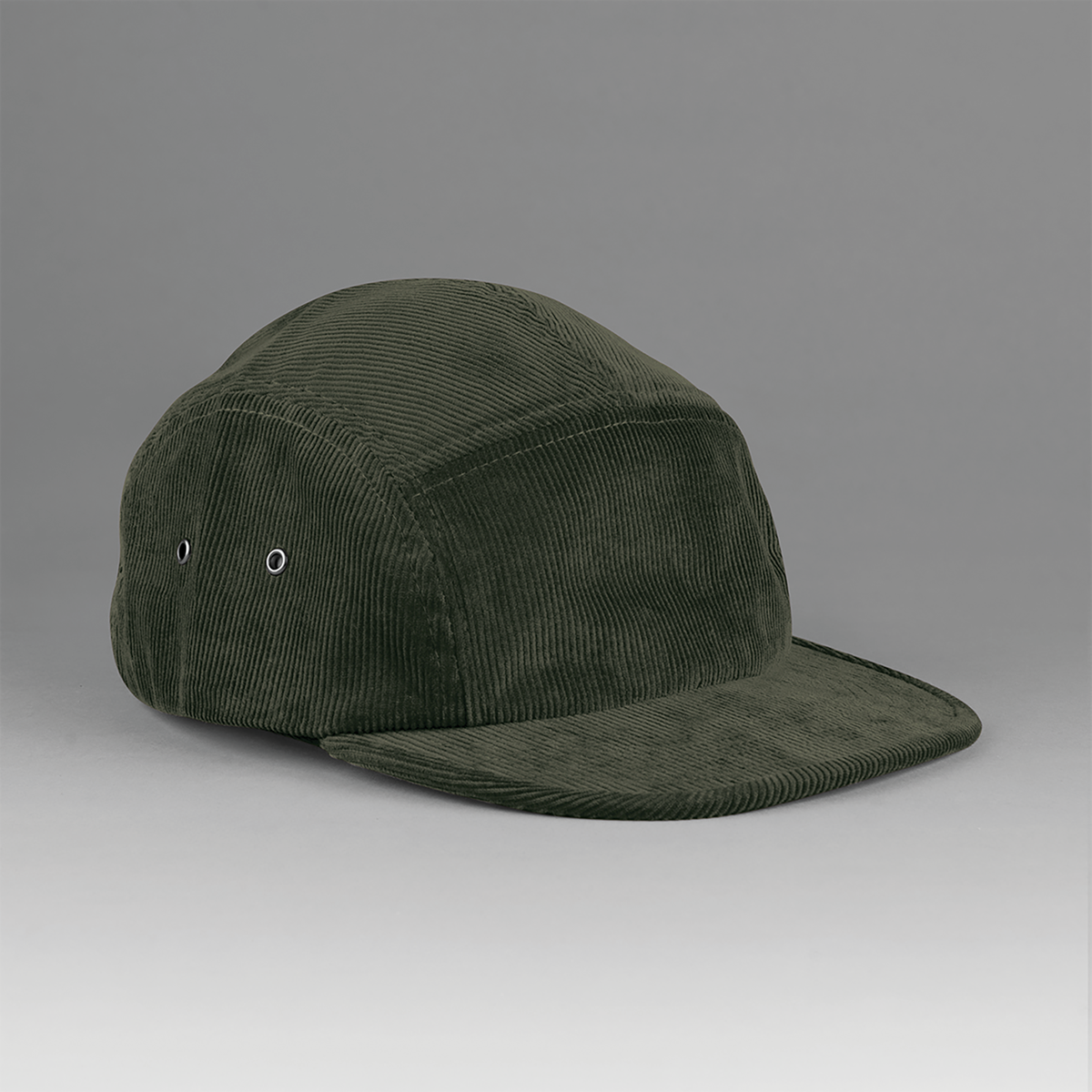 100% cotone biologico. Velluto a costine. Design a 5 pannelli con stemma piatto. Cinturino in tessuto con fibbia e occhiello.