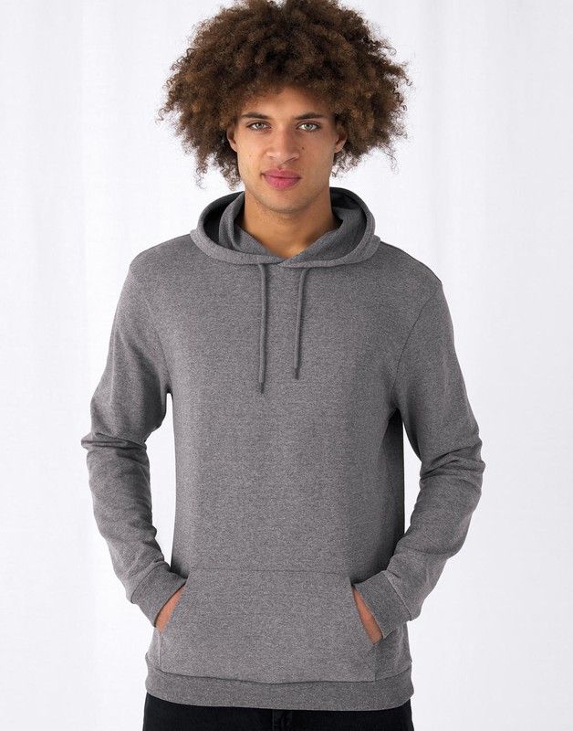 280 g / m² 80% cotone prelavato e ring spun, 20% poliestere Colori mélange: 60% cotone, 40% poliestere Grigio melange: 92% cotone, 8% viscosa Superficie liscia e uniforme per ottenere i migliori risultati stampa · French Terry: non -interno felpato · Cappuccio monostrato con coulisse regolabile nello stesso colore · Interno in jersey singolo e carré a mezzaluna · Tasca a marsupio · Polsini e orlo inferiore a costine · Cuciture laterali · Sistema B&C No Label, perfetto per rietichettare