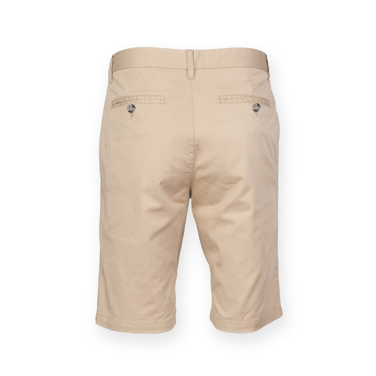 97% cotone / 3% elastan. Pantaloncini Chino con tasche davanti inclinate e due tasche a filetto dietro. Passanti per cintura. Zip YKK. Orlo semplice. Nessuna etichetta per semplificare la personalizzazione.