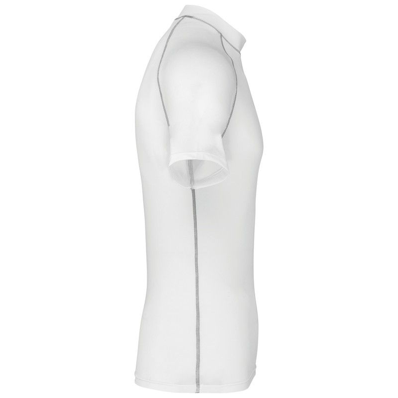 92% poliestere / 8% elastan. Maglia elastica ad asciugatura rapida. Protezione UV 40+ secondo i requisiti della norma EN13758-2. Manica corta Collo alto. Vestibilità slim. Fibbia elastica sull'orlo anteriore per passare il cordoncino dei pantaloncini e stabilizzare la camicia. Cuciture a contrasto. Rifinito con doppie cuciture sull'orlo delle maniche e del capo.