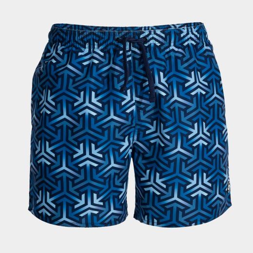 Bañador de hombre con diseño súper veraniego. Se trata de una bermuda de baño muy cómoda para nadar, llevar a la piscina o a la playa sin renunciar al estilo. Con pernera media y slip interior de rejilla. Incorpora cinturilla elástica regulable mediante cordones. Su doble sistema de ajuste se adapta a la forma física del deportista al mismo tiempo que fija la prenda para evitar deslizamientos. Así, podrás nadar sin preocupaciones. También tiene un bolsillo lateral elaborado en mesh ligero y elástico para no añadir apenas peso al short. En él, cabrán los objetos imprescindibles que necesites llevar contigo fuera del agua. Confeccionado con tejido resistente a los daños provocados por el cloro que tiene como fin alargar su durabilidad. Con acabado repelente al agua y de secado rápido para mayor comodidad. Presenta slip de malla interior elástica cuya función es mejorar la ventilación. Este bañador no sería nada sin el increíble juego de estampados con aire veraniego alegres y coloridos. Logotipo Joma en etiqueta de goma.