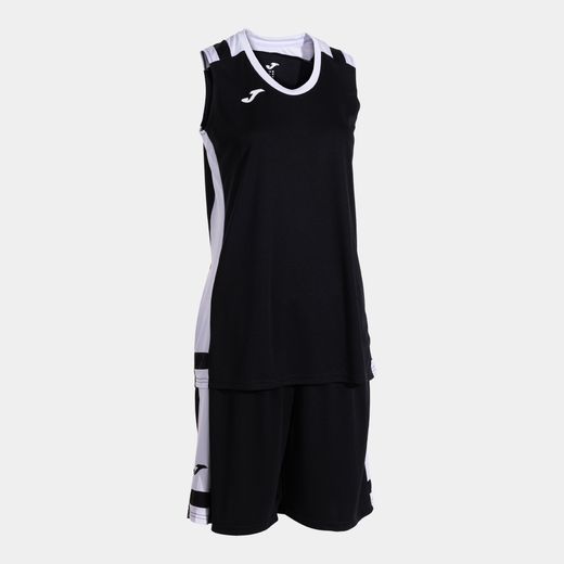 Set de baloncesto compuesto por camiseta sin mangas y short. Modelo de mujer destinado a competición para que todas las jugadoras alcancen el máximo rendimiento en la cancha.Camiseta muy ligera sin mangas, con clásico cuello redondo. En los costados, lleva la tecnología MICRO-MESH SYSTEM, que regula la la cantidad de sudor en una de las zonas en las que más se acumula. Además, esto paneles son elásticos para facilitar la libertad de movimiento. El pantalón corto tiene cinturilla elástica regulable con cordón y el mismo sistema transpirable en los laterales. Ambas prendas se han elaborado con tejido técnico, ligero y resistente. Fácil cuidado asegurado.Logotipo Joma bordado en la camiseta y en printing en el pantalón.