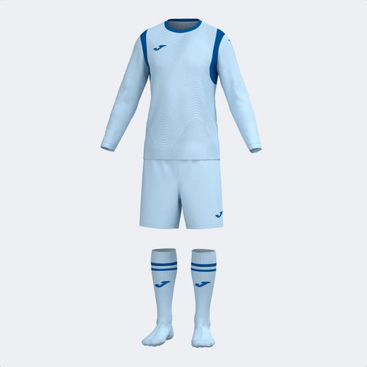 Set deportivo, diseñado para aquellos que buscan comodidad y rendimiento. Este conjunto deportivo combina estilo y funcionalidad, otorgando máximo rendimiento en el campo.La camiseta de manga larga y cuello redondo proporciona comodidad y libertad de movimiento. Además, cuenta con la tecnología MICRO-MESH SYSTEM en las axilas, que favorece una rápida evaporación del sudor. El short incluye cintura elástica ajustable con cordón interior para conseguir un ajuste seguro.Ambas prendas se han confeccionado en tejido técnico de calidad, confortable y resistente, ideal para ofrecer el máximo confort en cada partido.Por otro lado, incluye medias de fútbol elaboradas con tejido elástico y de secado rápido para eliminar la humedad y eliminar las zonas de fricción. La parte superior en canalé funciona como refuerzo elástico.Logotipo de Joma bordado.