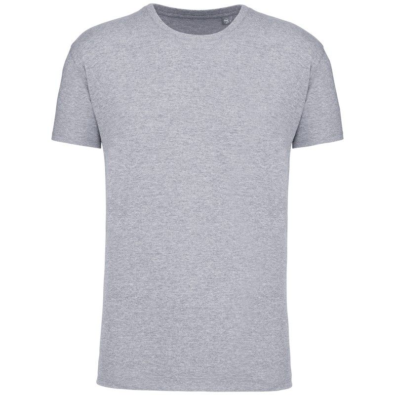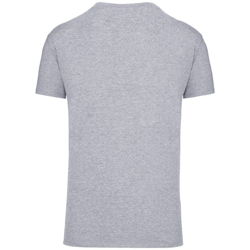 Tinta unita : 100% cotone. Colore Ash Heather : 98% cotone / 2% viscosa, e Oxford Grey : 90% cotone / 10% viscosa. Tutti i colori sono realizzati in cotone in conversione biologico. Cotone pettinato. Modello tagliato e cucito. Girocollo a costine ed elastan. Nastrino di rinforzo tono su tono sul collo. Finiture a doppio ago sui polsini a e fondo capo.