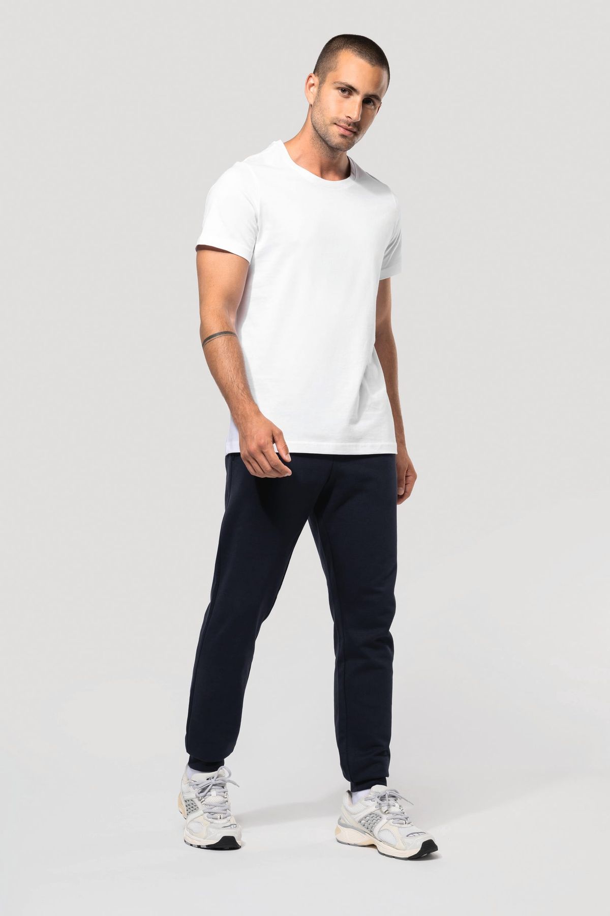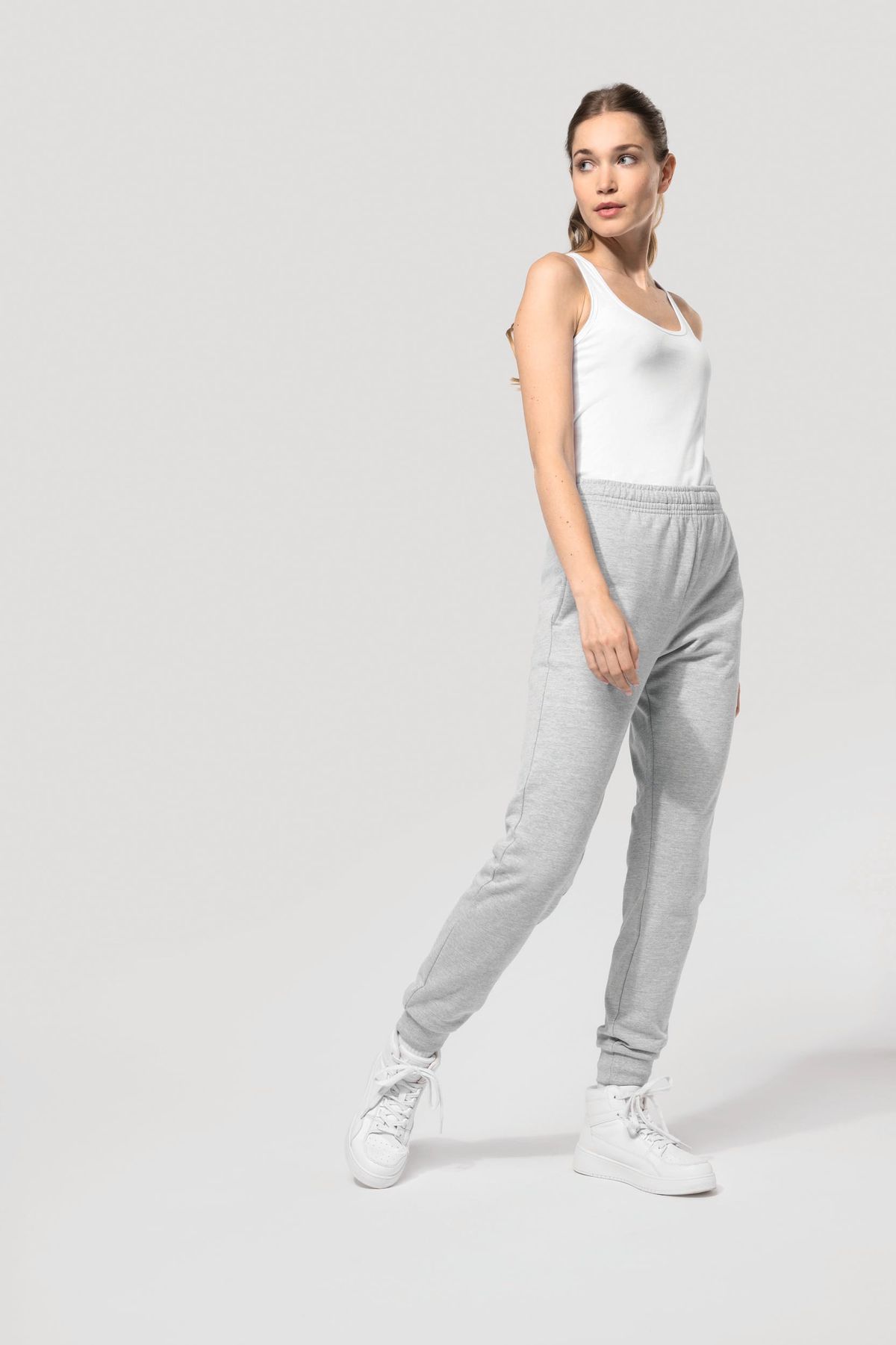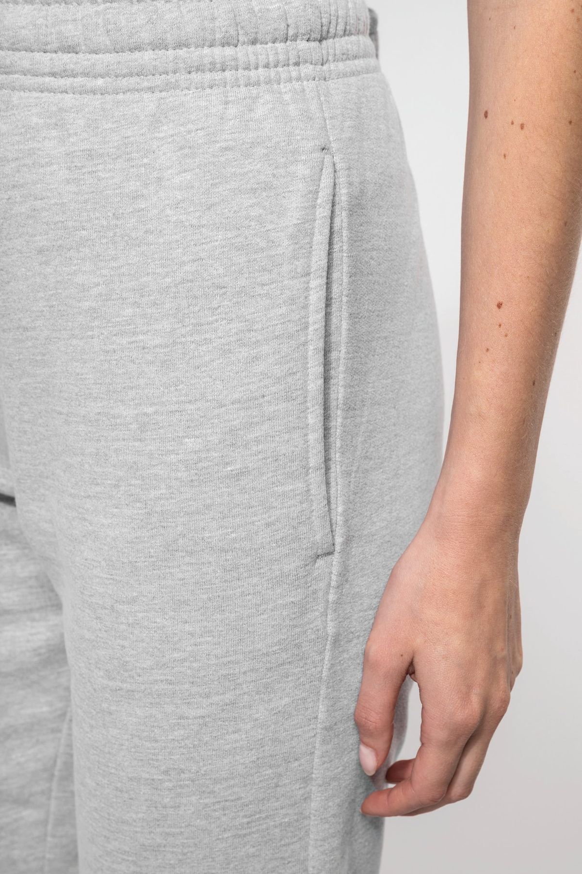 80% cotone / 20% poliestere. Felpa garzata a 2 fili. Taglio dritto. 2 tasche laterali. Girovita elasticizzato con coulisse piatta. Fondo gamba con bordo a costine.